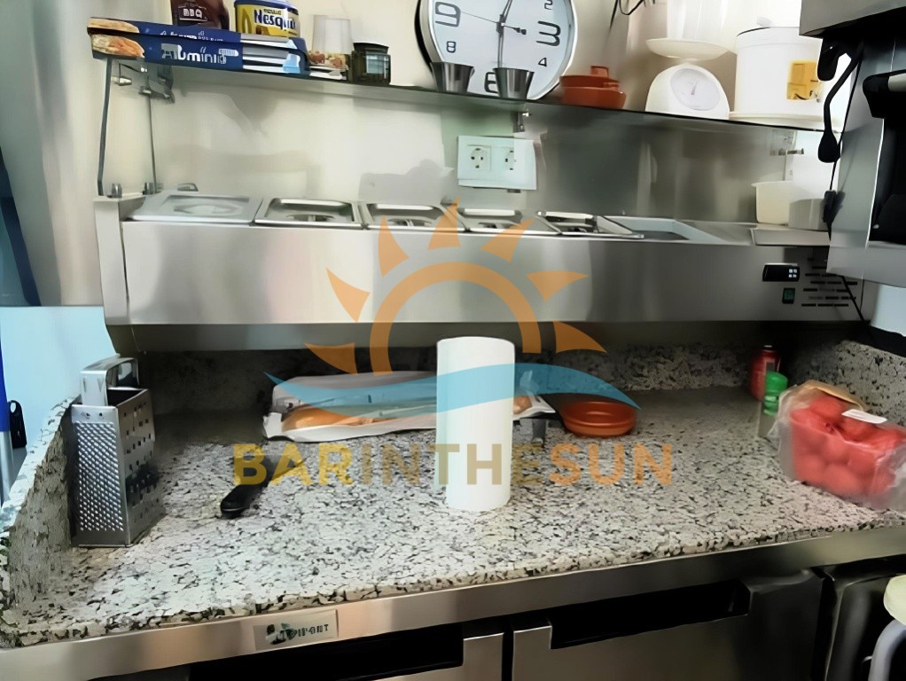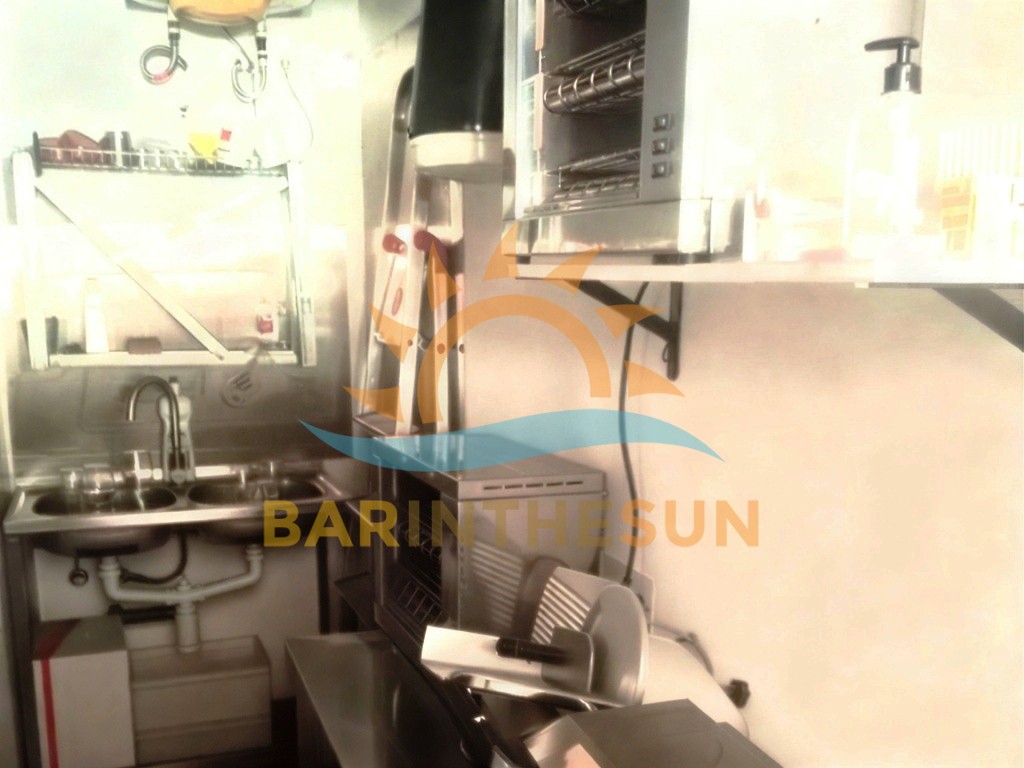 However, the kitchen does not have an extractor system installed. For this reason, it is not suitable for cooking methods that produce smoke or fumes, such as frying. Instead, the setup supports a menu focused on cold dishes and light preparation. If required, we can explain exactly what is permitted during a viewing.